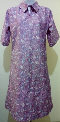 Purple Flowers Blue Leaves Shirt Sleeve Dress